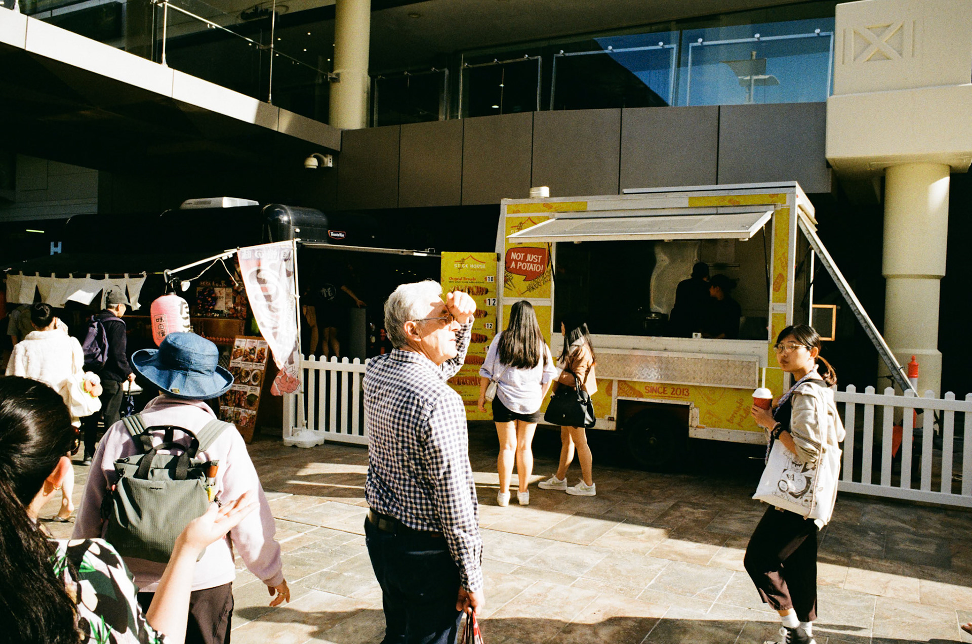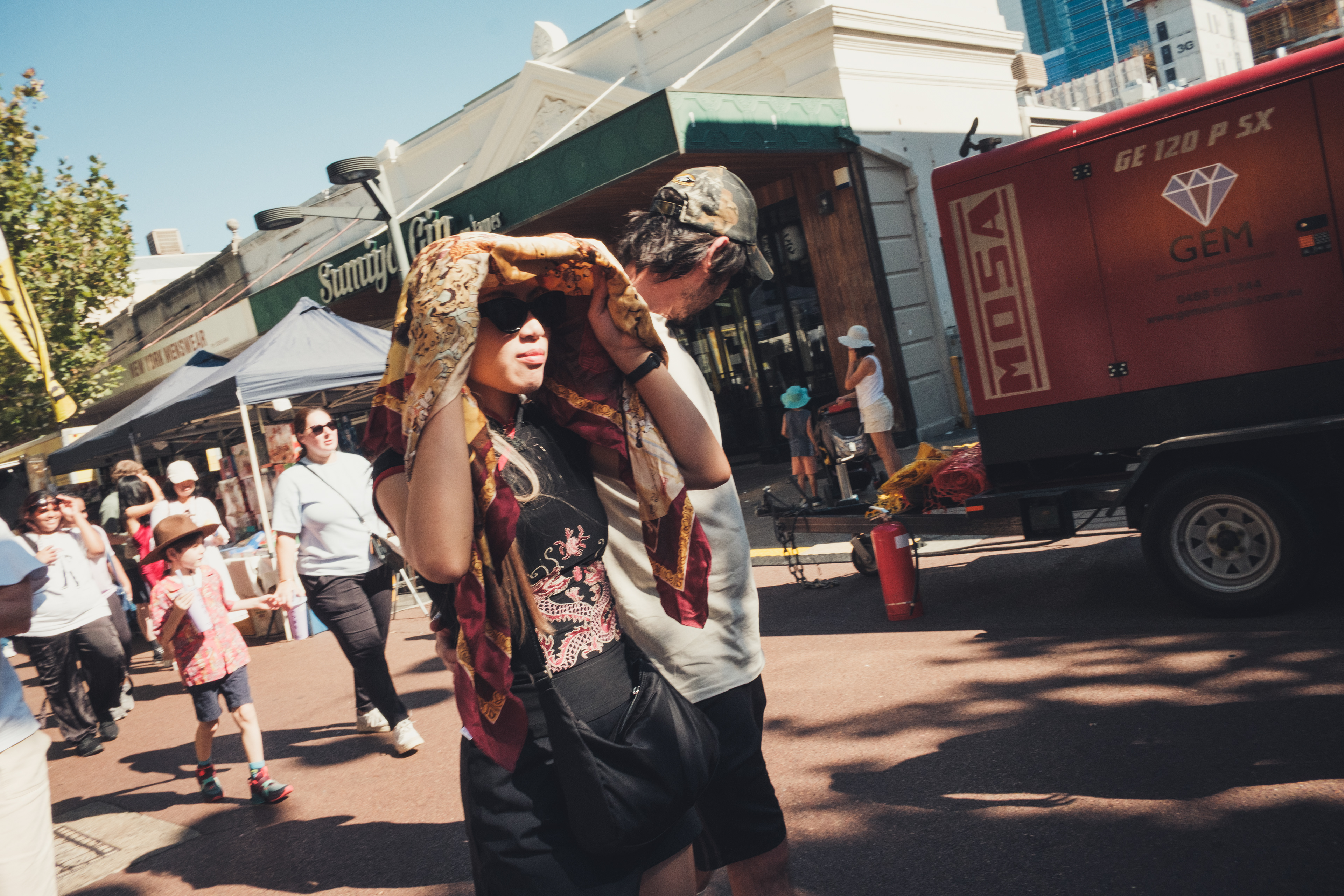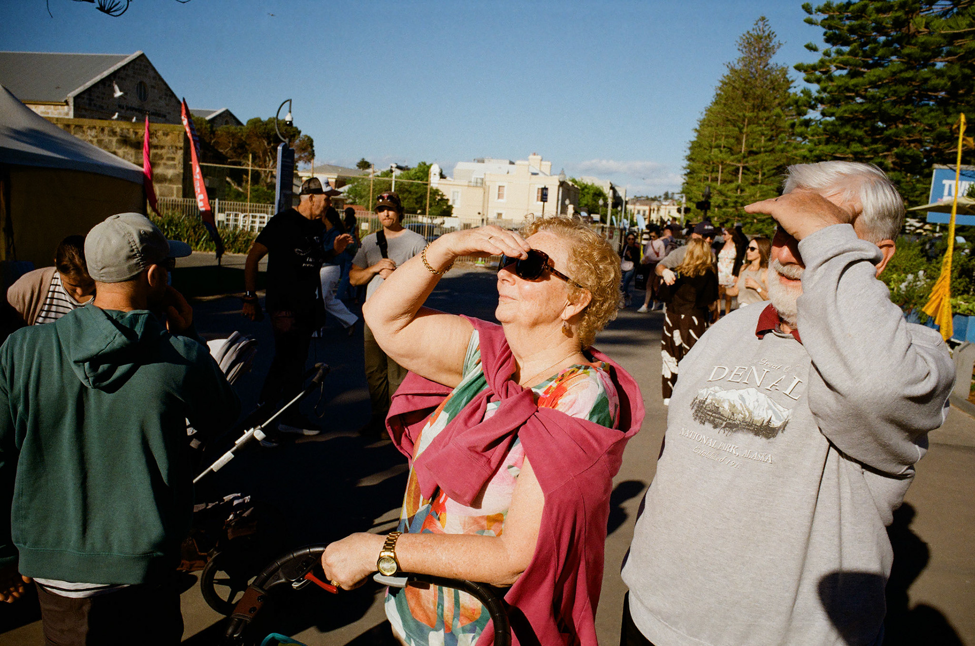 Scenes of people caught in the sun, using anything but a hat.