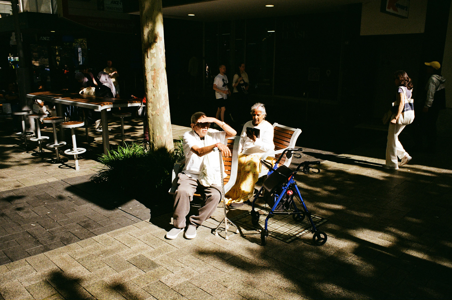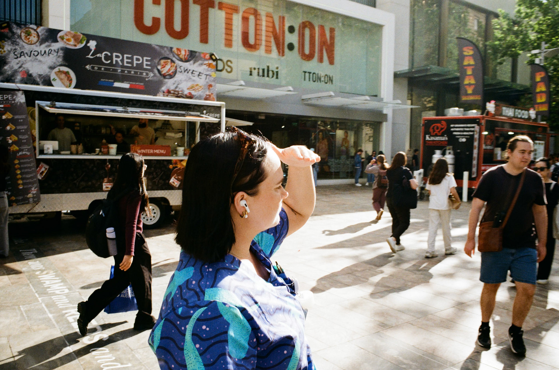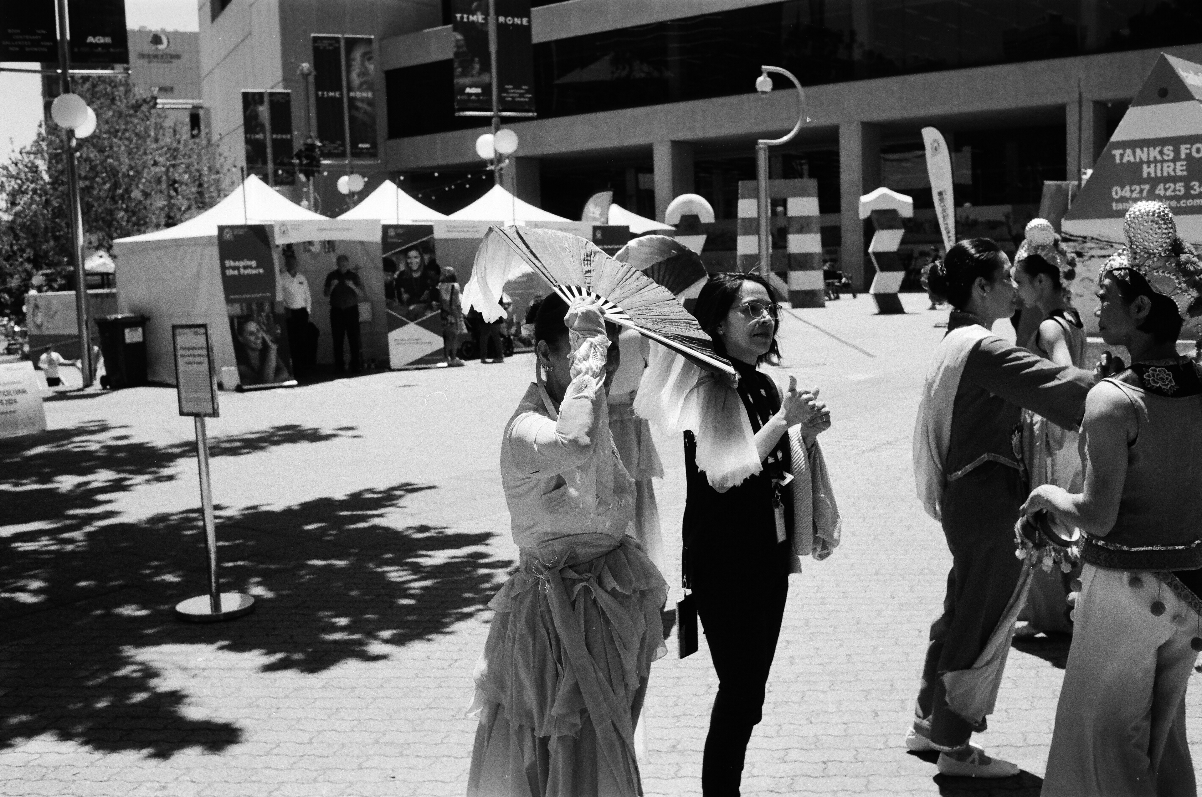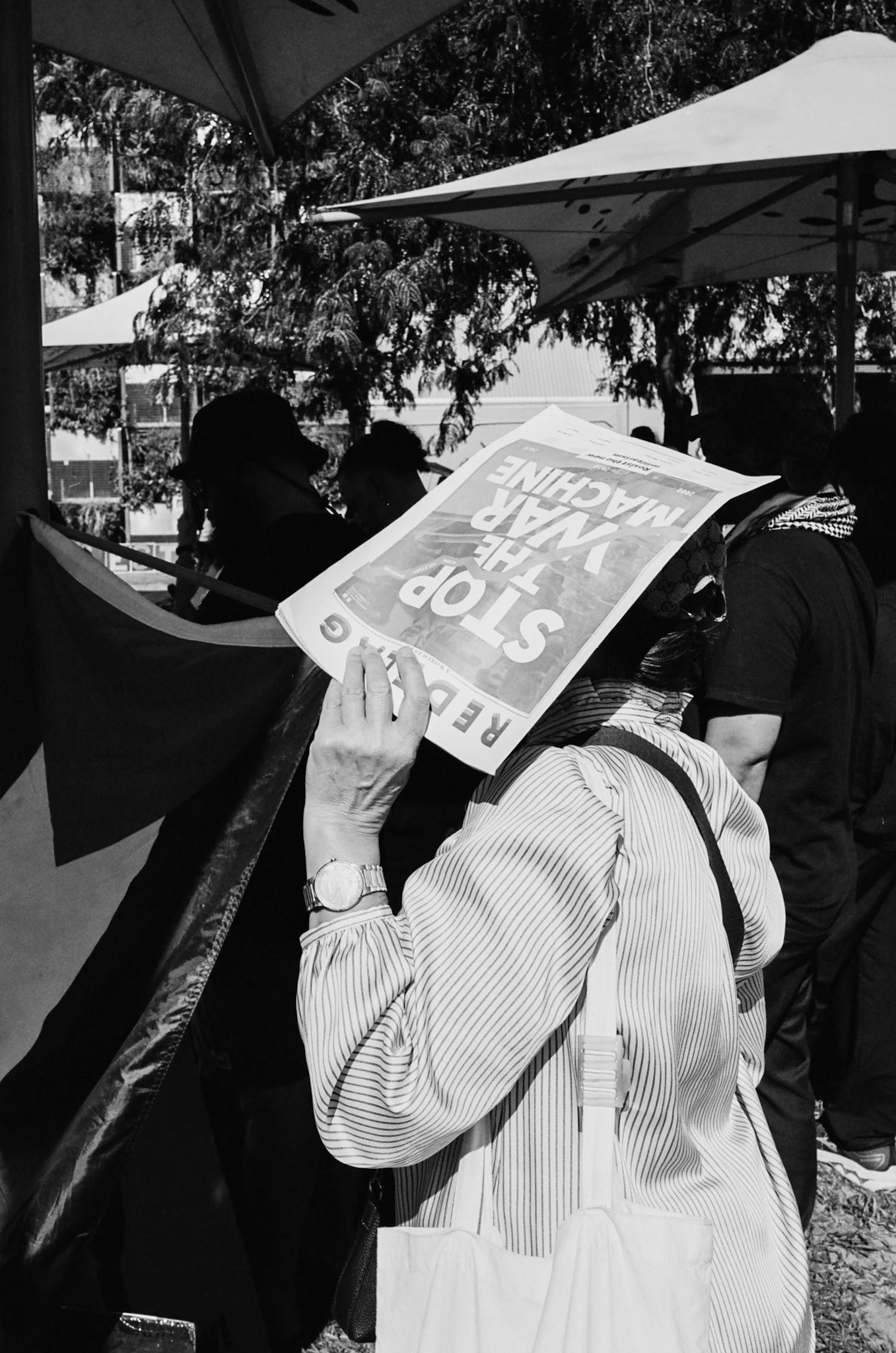 Scenes of people caught in the sun, using anything but a hat.