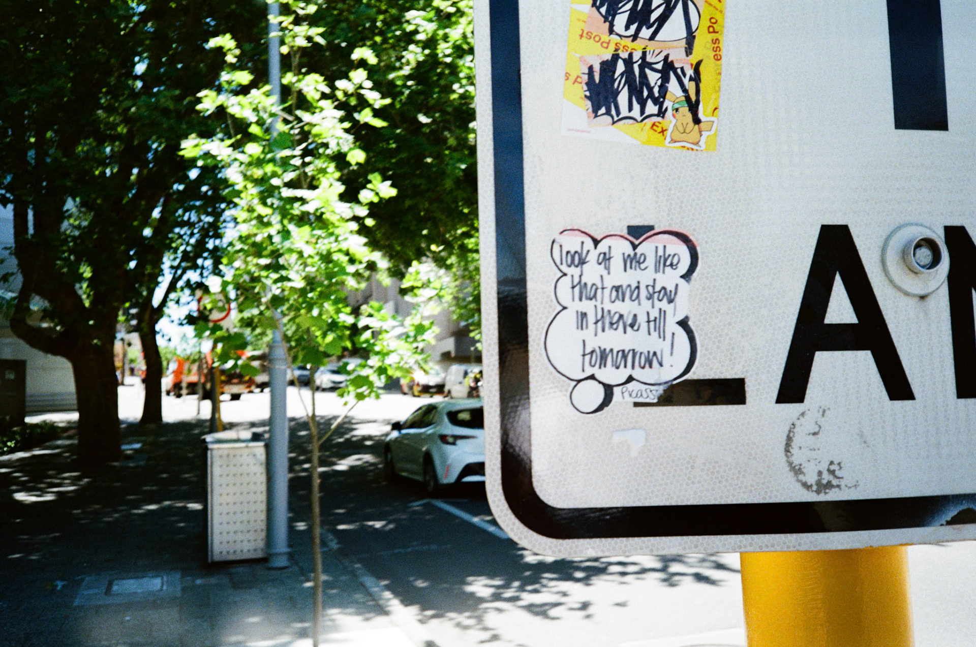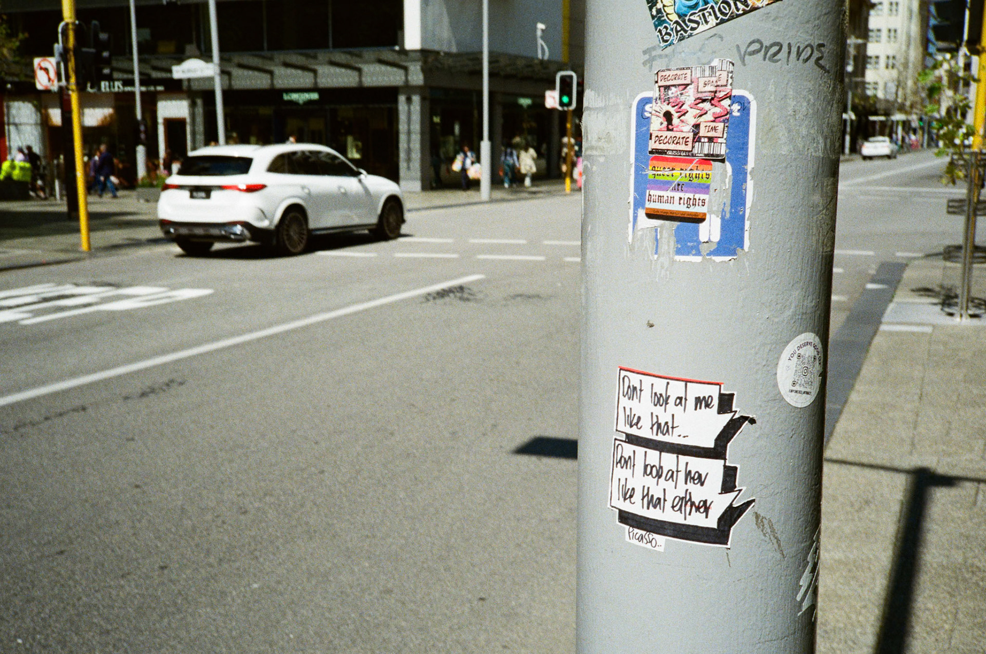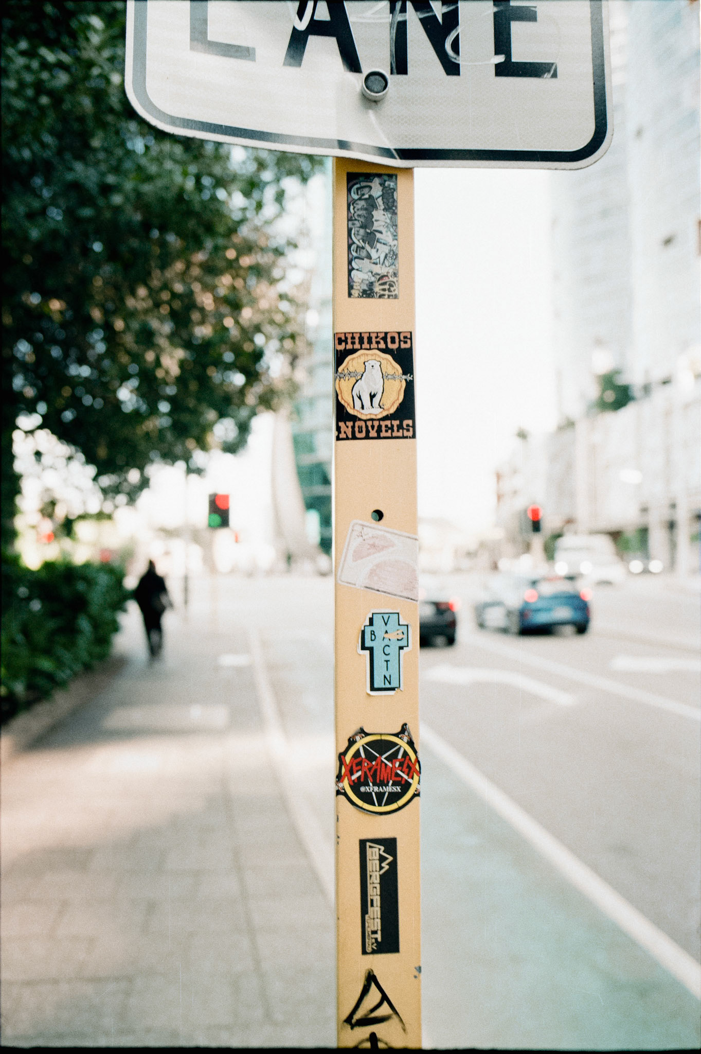 A look at the stickers scattered across poles and walls, fragments of expression, humour, and attitude.